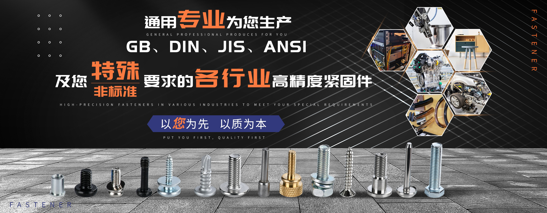 中山市通用螺絲制造有限公司成立于1987年,工廠坐落于廣東四小虎之一的中山市,北連廣州,毗鄰港澳??傉嫉孛娣e14000m 2,足有兩個足球場。1998年通過德國萊茵TUV ISO9002認證,于2002年通過TUV ISO9001:2000認證。2008年通過ISO 14000認證。我司主營自攻螺絲、組合螺絲機械螺絲、防松螺絲等標準和非標準件,既可按客戶的要求提交所需的產品,也可為客戶量身定做所需產品。我司擁有專業的產品檢測隊伍和投影分析儀、金相、硬度計(韋氏和洛氏)、扭矩力測試計等完善的檢測設備,為電子、電器、五金塑料、衛浴、家具、機械、汽配等行業提供符合歐盟質量、環保要求的產品。2006年,我司自主開發的ERP管理系統,使我們的生產和服務效率得到了極大的提高。 經過三十多年地摸爬滾打,依靠眾多新老顧客的支持,通用螺絲逐漸成長為國內知名的緊固件供應商。了解更多 >>